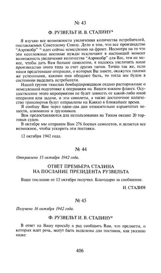 Ф. Рузвельт И.В. Сталину. 12 октября 1942 года