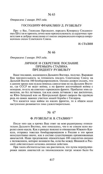 Ф. Рузвельт И.В. Сталину. 8 января 1943 года