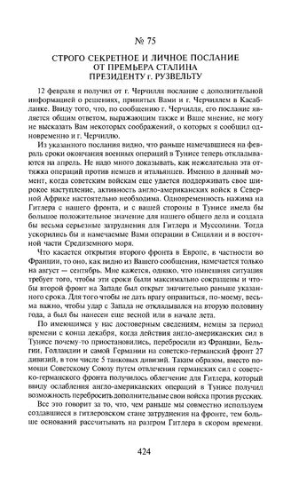 Строго секретное и личное послание от премьера Сталина президенту г. Рузвельту. 16 февраля 1943 года