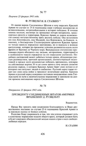 Президенту Соединенных Штатов Америки Франклину Д. Рузвельту. Отправлено 23 февраля 1943 года