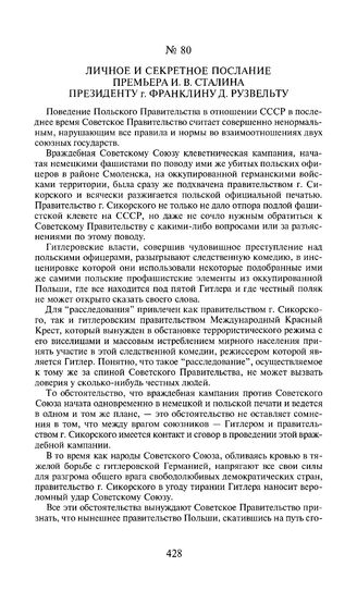 Личное и секретное послание премьера И.В. Сталина президенту г. Франклину Д. Рузвельту. 21 апреля 1943 года