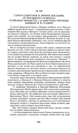Главная Переписка И. Сталина с У. Черчиллем, К. Эттли, Ф. Рузвельтом и Г. Т... Строго секретное и личное послание от президента Рузвельта и премье...