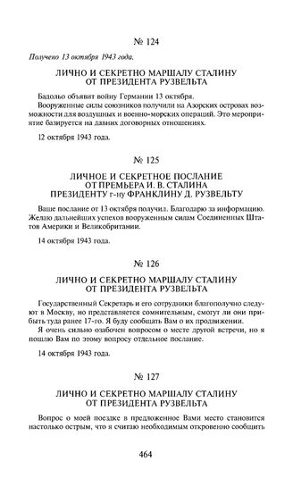 Лично и секретно маршалу Сталину от президента Рузвельта. 14 октября 1943 года [1]