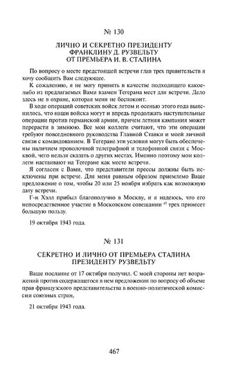 Лично и секретно президенту Франклину Д. Рузвельту. от премьера И.В. Сталина. 19 октября 1943 года