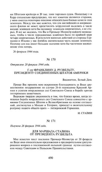 Г-ну Франклину Д. Рузвельту, президенту Соединенных Штатов Америки. Отправлено 28 февраля 1944 года