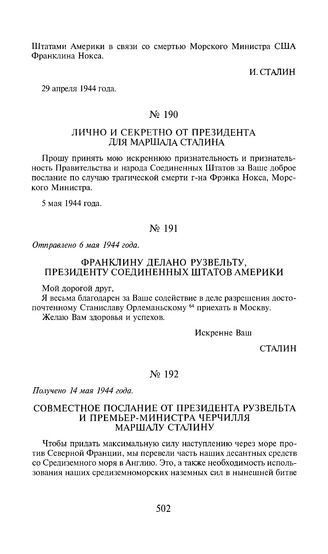 Франклину Делано Рузвельту, президенту Соединенных Штатов Америки. Отправлено 6 мая 1944 года