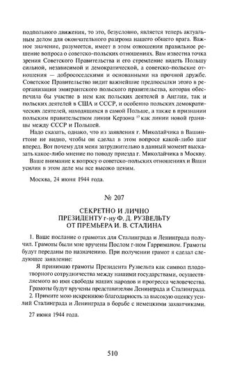 Секретно и лично президенту г-ну Ф. Рузвельту от премьера И.В. Сталина. 27 июня 1944 года
