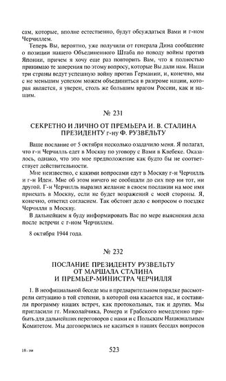 Секретно и лично от премьера И.В. Сталина президенту г-ну Ф. Рузвельту. 8 октября 1944 года