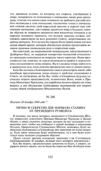 Лично и секретно для маршала Сталина от президента Рузвельта. Получено 20 декабря 1944 года