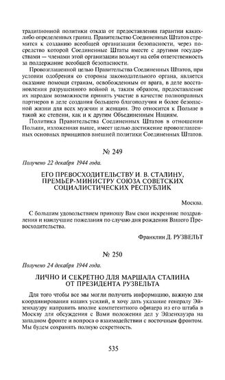 Лично и секретно для маршала Сталина от президента Рузвельта. Получено 24 декабря 1944 года