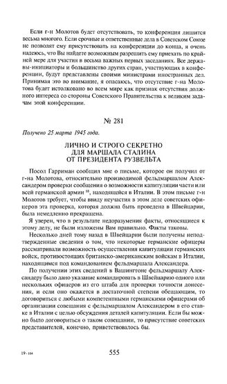 Лично и строго секретно для маршала Сталина от президента Рузвельта. Получено 25 марта 1945 года [2]