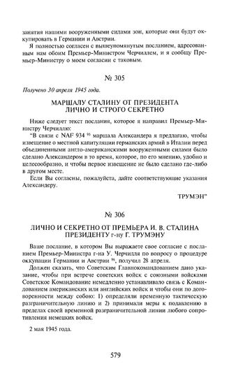 Лично и секретно от премьера И.В. Сталина президенту г-ну Г. Трумэну. 2 мая 1945 года [1]