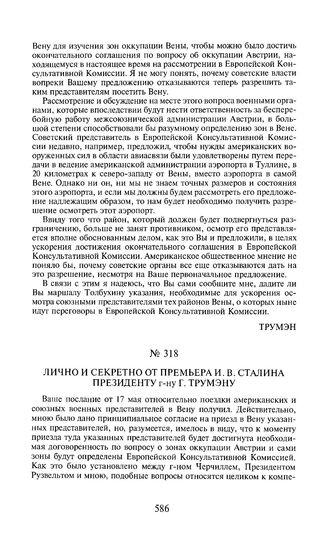 Лично и секретно от премьера И.В. Сталина президенту г-ну Г. Трумэну. 18 мая 1945 года