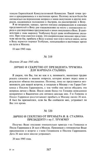 Лично и секретно от президента Трумэна для маршала Сталина. Получено 20 мая 1945 года