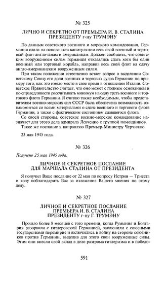 Лично и секретно от премьера И.В. Сталина президенту г-ну Г. Трумэну. 23 мая 1945 года