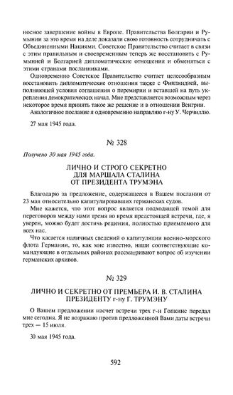 Лично и строго секретно для маршала Сталина от президента Трумэна. Получено 30 мая 1945 года