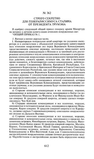 Строго секретно для генералиссимуса Сталина от президента Трумэна. 15 августа 1945 года