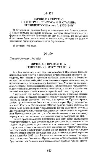 Лично и секретно от генералиссимуса И.В. Сталина президенту США г-ну Г. Трумэну. 26 октября 1945 года