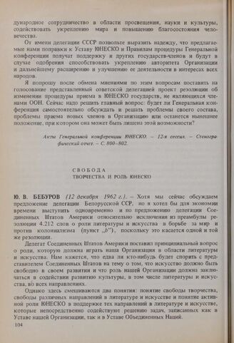 12-я сессия Генеральной конференции ЮНЕСКО, 1962 год. Свобода творчества и роль ЮНЕСКО // Акты Генеральной конференции ЮНЕСКО. - 12-я сессия. - Стенографический отчет. - С. 904.