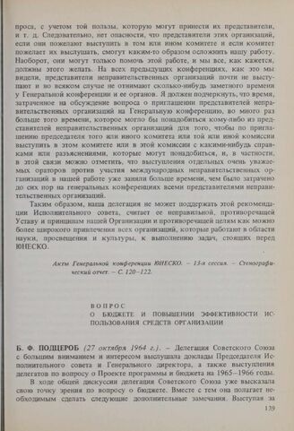 13-я сессия Генеральной конференции ЮНЕСКО, 1964 год. Вопрос о бюджете и повышении эффективности использования средств Организации // Акты Генеральной конференции ЮНЕСКО. - 13-я сессия. - Стенографический отчет. - С 379-380.