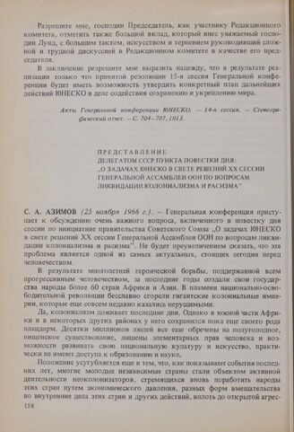 14-я сессия Генеральной конференции ЮНЕСКО, 1966 год. Представление делегатом СССР пункта повестки дня: «О задачах ЮНЕСКО в свете решений XX сессии Генеральной Ассамблеи ООН по вопросам ликвидации колониализма и расизма»