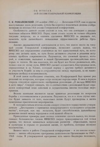 14-я сессия Генеральной конференции ЮНЕСКО, 1966 год. Об итогах 14-й сессии Генеральной конференции