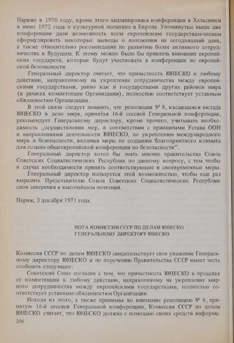 16-я сессия Генеральной конференции ЮНЕСКО, 1970 год. Об участии ЮНЕСКО в подготовке к Совещанию по безопасности и сотрудничеству в Европе (обмен нотами).1971-1972 годы. Нота Комиссии СССР по делам ЮНЕСКО Генеральному директору ЮНЕСКО