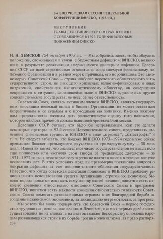 3-я внеочередная сессия Генеральной конференции ЮНЕСКО, 1973 год. Выступление главы делегации СССР о мерах в связи с создавшимся в 1973 году финансовым положением ЮНЕСКО // Акты Генеральной конференции ЮНЕСКО.- 3-я внеочередная сессия.- Резолюции и стенографический отчет. - С. 140-146.