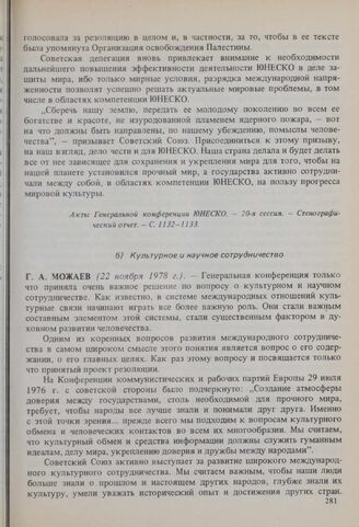 20-я сессия Генеральной конференции ЮНЕСКО, 1978 год. Заявления представителей делегации СССР по принятым документам. б) Культурное и научное сотрудничество