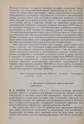 20-я сессия Генеральной конференции ЮНЕСКО, 1978 год. Заявления представителей делегации СССР по принятым документам. в) Декларация о принципах средств массовой информации // Акты Генеральной конференции ЮНЕСКО. - 20-я сессия. - Стенографический отчет. - С. 1097-1098.