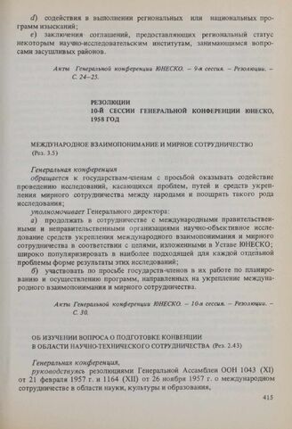 Резолюции 10-й сессии Генеральной конференции ЮНЕСКО, 1958 год. Международное взаимопонимание и мирное сотрудничество (Рез. 3.5) // Акты Генеральной конференции ЮНЕСКО. - 10-я сессия. - Резолюции. - С. 30.