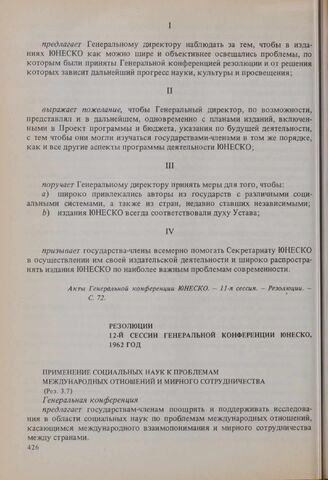 Резолюции 12-й сессии Генеральной конференции ЮНЕСКО, 1962 год. Применение социальных наук к проблемам международных отношений и мирного сотрудничества (Рез. 3.7) // Акты Генеральной конференции ЮНЕСКО. - 12-я сессия. - Резолюции. - С. 46-47.