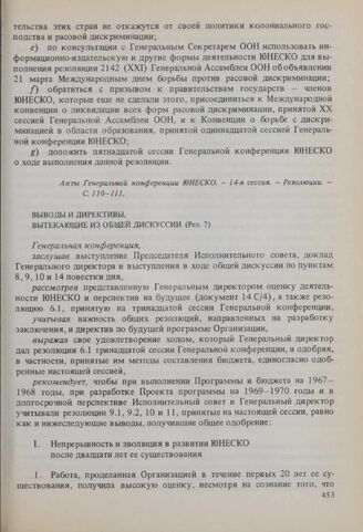 Главная СССР и ЮНЕСКО 1954-1987 СССР и ЮНЕСКО. 1954-1987. Т. 1 Документы Резолюции 14-й сессии Генеральной конференции ЮНЕСКО, 1966 год. Выв...
