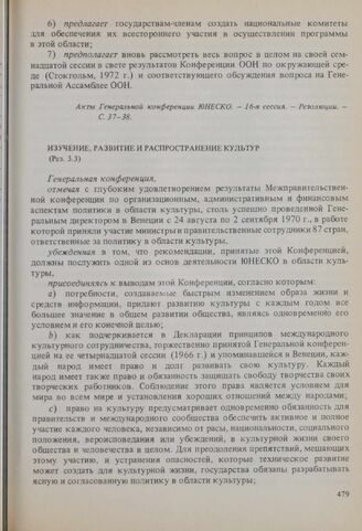 Резолюции 16-й сессии Генеральной конференции ЮНЕСКО, 1970 год. Изучение, развитие и распространение культур (Рез. 3.3) // Акты Генеральной конференции ЮНЕСКО. - 16-я сессия. - Резолюции. - С. 51-52.
