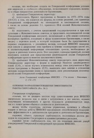 Резолюции 17-й сессии Генеральной конференции ЮНЕСКО, 1972 год. Основные направления повышения эффективности работы Секретариата (Рез. 38.1)