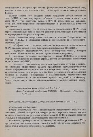 Резолюции 22-й сессии Генеральной конференции ЮНЕСКО, 1983 год. Празднование 800-летия «Слова о полку Игореве» (Рез. 11.12)