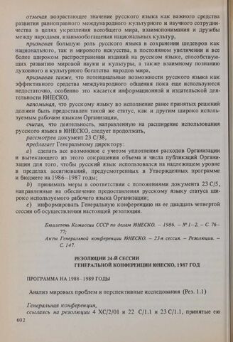 Резолюции 24-й сессии Генеральной конференции ЮНЕСКО, 1987 год. Программа на 1988-1989 годы. Анализ мировых проблем и перспективные исследования (Рез. 1.1) // Акты Генеральной конференции ЮНЕСКО. - 24-я сессия. - Резолюции. - С. 14-15.