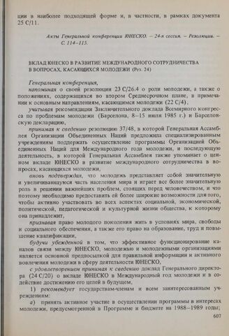 Резолюции 24-й сессии Генеральной конференции ЮНЕСКО, 1987 год. Вклад ЮНЕСКО в развитие международного сотрудничества в вопросах, касающихся молодежи (Рез. 24)