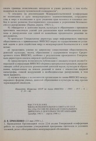 Главная СССР и ЮНЕСКО 1954-1987 СССР и ЮНЕСКО. 1954-1987. Т. 2 Документы Выступление члена Исполнительного совета от СССР на 119-ой сессии п...