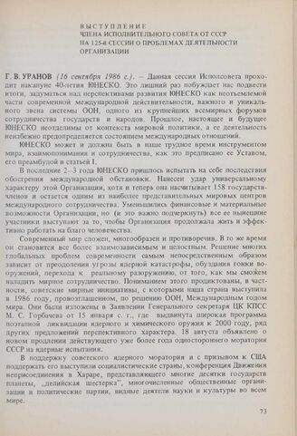 Выступление члена Исполнительного совета от СССР на 125-й сессии о проблемах деятельности Организации. 16 сентября 1986 г. // Архив Комиссии СССР по делам ЮНЕСКО.