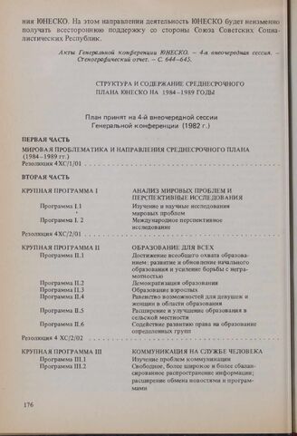 4-я внеочередная сессия Генеральной конференции ЮНЕСКО, 1982 год. Структура и содержание Среднесрочного плана ЮНЕСКО на 1984-1989 годы