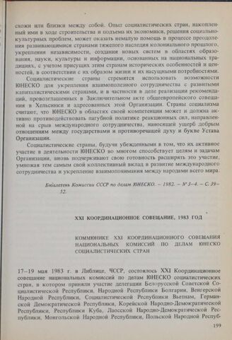 XXI Координационное совещание, 1983 год. Коммюнике XXI Координационного совещания национальных комиссий по делам ЮНЕСКО социалистических стран // Бюллетень Комиссии СССР по делам ЮНЕСКО. - 1983. - № 3-4. - С 53-58.