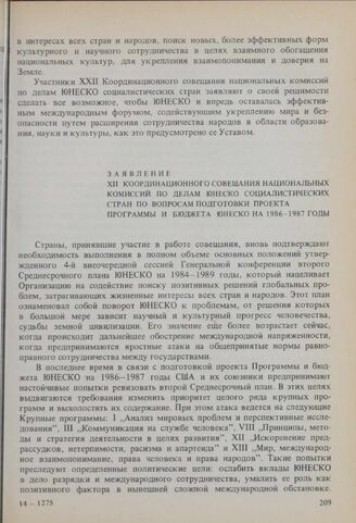ХХII Координационное совещание, 1984 год. Заявление ХХII Координационного совещания национальных комиссий по делам ЮНЕСКО социалистических стран по вопросам подготовки проекта Программы и бюджета ЮНЕСКО на 1986-1987 годы // Бюллетень Комиссии СССР по делам ЮНЕСКО. - 1984. - № 4. - С 16-23.