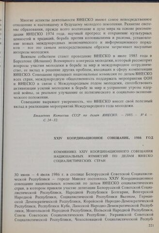 ХХIV Координационное совещание национальных комиссий по делам ЮНЕСКО социалистических стран. Минск, 30 июня-4 июля 1986 г.