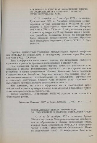 Межправительственная конференция по образованию в области окружающей среды // Бюллетень Комиссии СССР по делам ЮНЕСКО. - 1978. - № 1. - С. 7.