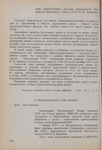 Главная СССР и ЮНЕСКО 1954-1987 СССР и ЮНЕСКО. 1954-1987. Т. 2 Документы К Международному году ребенка. Текст выступления Генерального секре...