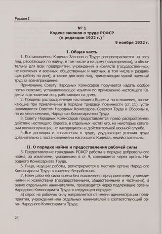 Кодекс законов о труде РСФСР (в редакции 1922 г.). 9 ноября 1922 г. // Собрание Узаконений и Распоряжений Рабочего и Крестьянского Правительства РСФСР. 1922. № 70. Ст. 903.