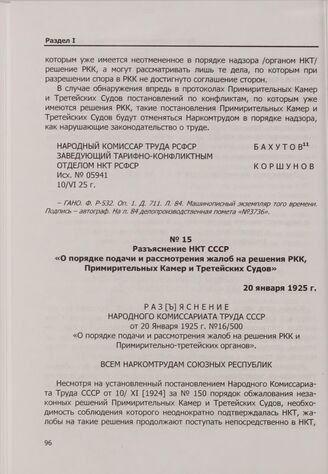 Разъяснение НКТ СССР «О порядке подачи и рассмотрения жалоб на решения РКК, Примирительных Камер и Третейских Судов». 20 января 1925 г.
