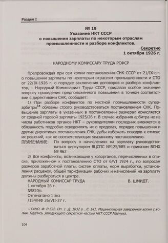 Указание НКТ СССР о повышении зарплаты по некоторым отраслям промышленности и разборе конфликтов. 1 октября 1926 г.