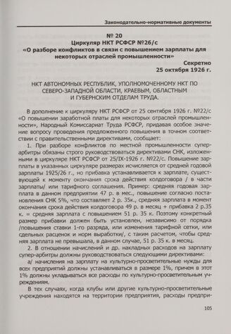 Циркуляр НКТ РСФСР № 26/с «О разборе конфликтов в связи с повышением зарплаты для некоторых отраслей промышленности». 25 октября 1926 г.